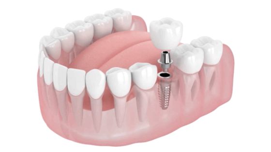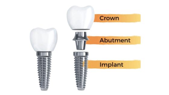 Every single dental implant consists of three parts - the implant, the abutment & the crown. The implant is made of medical grade titanium. This part is surgically placed into the patient's jaw bone and left to heal for 3 months afterwards.